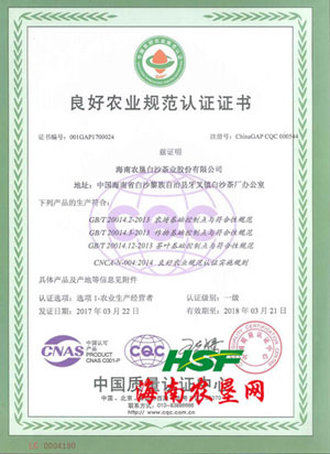 白沙茶業(yè)公司獲得中國質(zhì)量認證中心GAP認證