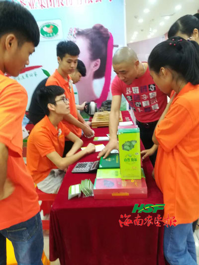 圖為學子在愛心助學街海墾茶業(yè)愛心店銷售茶葉。