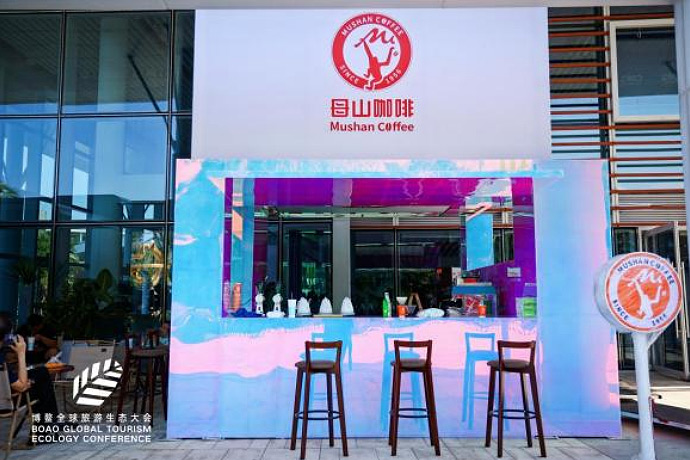 同時,海墾熱作產(chǎn)業(yè)集團為博鰲“量身定制”的“流光溢彩”母山咖啡館正式亮相。該咖啡館通過時尚簡約的設計、炫彩鐳射的外觀、濃郁香醇的咖啡,吸引了眾多與會嘉賓、市民游客前來“打卡”。