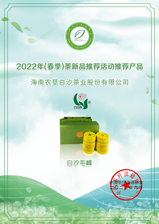 2022年6月榮獲中國茶葉流通協(xié)會2022年(春季)茶新品推薦活動推薦產(chǎn)品