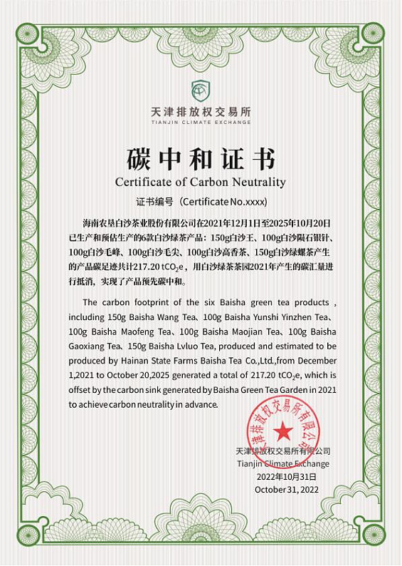 海墾熱作零碳母山咖啡通過可再生能源利用等多種手段,有效降低農(nóng)產(chǎn)品在生產(chǎn)、物流、包裝、消費等過程中的能源消耗和溫室氣體排放量,達到零碳排放標準,并獲得碳中和證書。