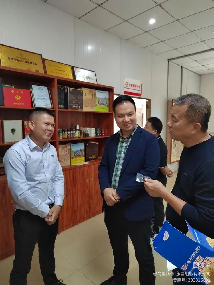 (圖為海口東昌胡椒有限公司總經(jīng)理曾廣進(jìn)為李桂青副秘書(shū)長(zhǎng)一行介紹公司基本情況及品牌運(yùn)營(yíng)情況)