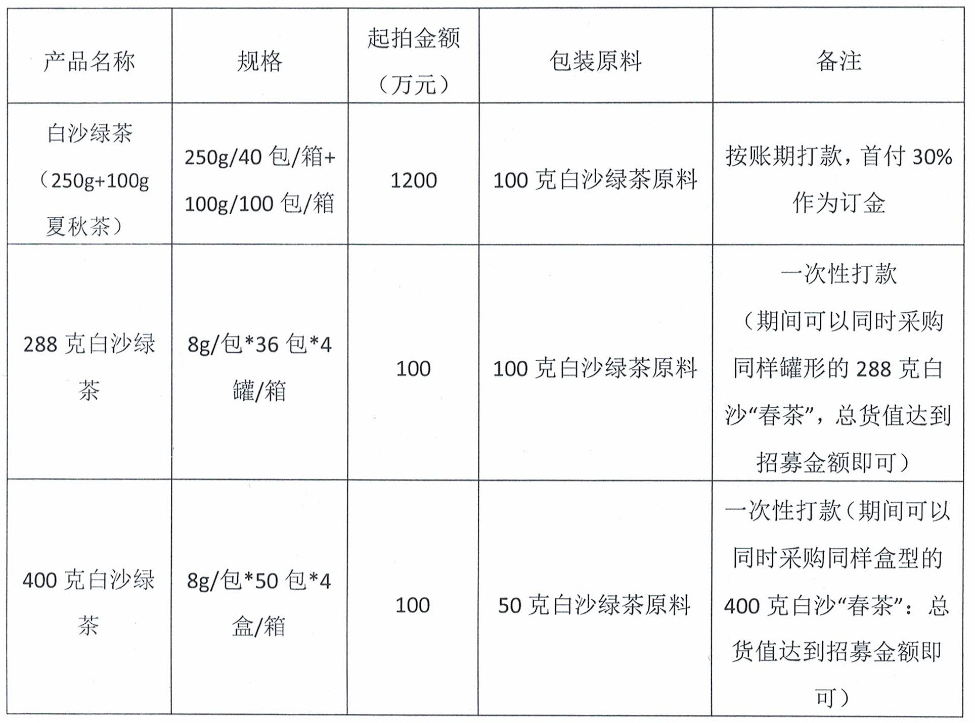 注:288克、400克總經(jīng)銷產(chǎn)品春茶提供的具體數(shù)量根據(jù)公司產(chǎn)量確定。
