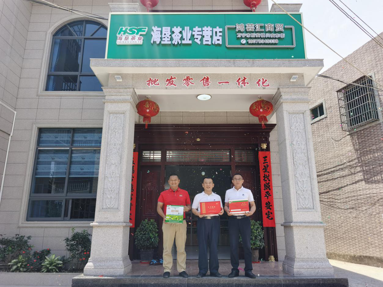 2021-04-194月14日上午,海墾茶業(yè)集團“百城千店”再添新成員-第124家專營店在萬寧市后安鎮(zhèn)興安東街隆重開業(yè),集團營銷部人員前往祝賀,同時授予“海墾茶業(yè)特約經(jīng)銷商授權(quán)證書”。開設(shè)海墾茶業(yè)專營店是海墾茶業(yè)集團實施“百城....