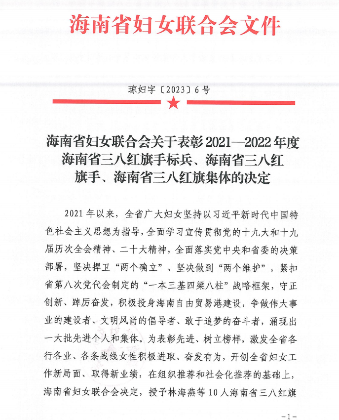 喜報(bào)!海墾熱作集團(tuán)財(cái)務(wù)部榮獲2021-2022年度海南省“三八紅旗集體”